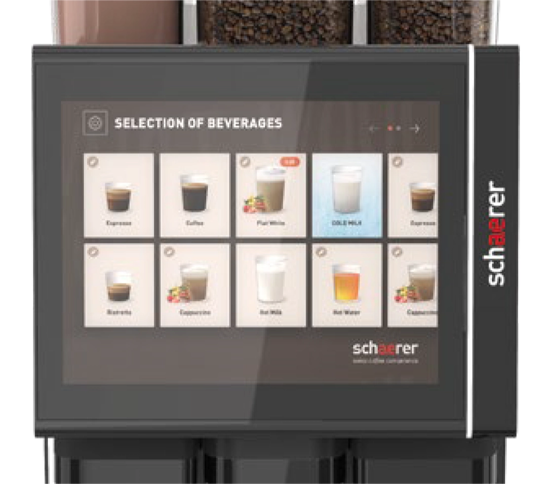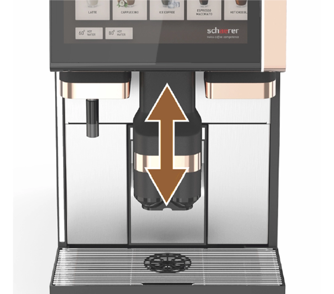 - 直感的な操作性だけでなく、動画によるデジタルサイネージ効果で売上アップに貢献。さらにスパウト(抽出口)の自動昇降機能により、オペレーションの完全自動化をサポートします。