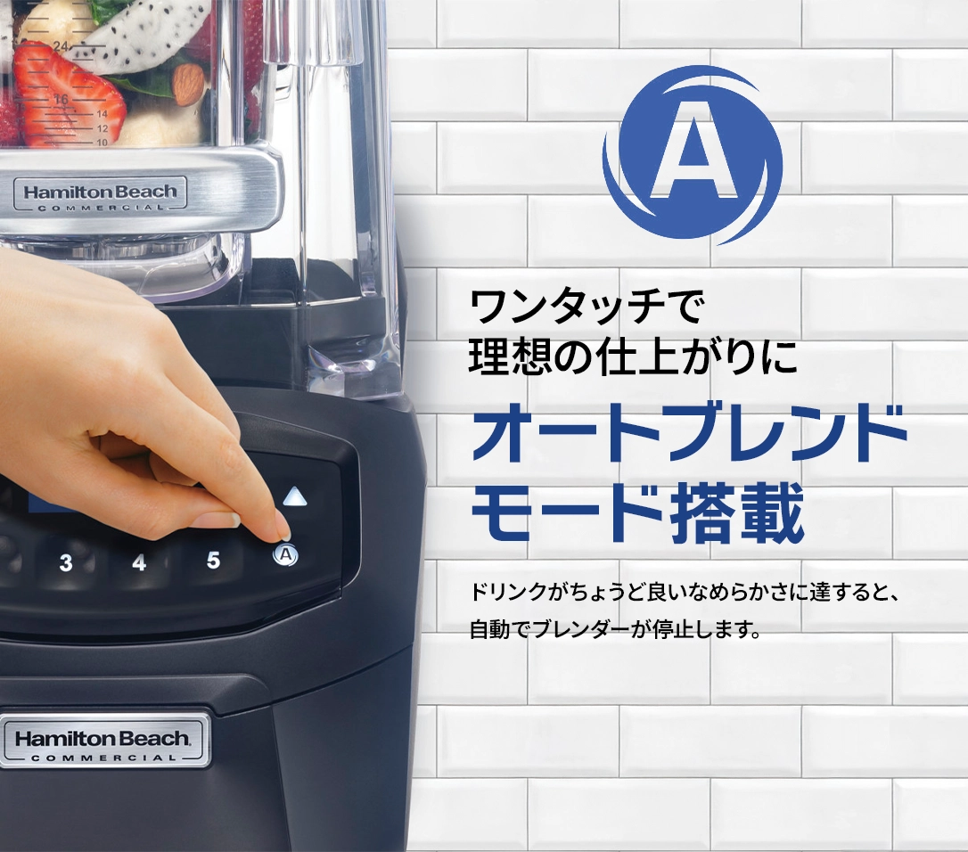 大出力モーターとWave~Action®構造により、氷や冷凍果実も短時間で均一にブレンド。店舗の提供スピードと品質を両立します。