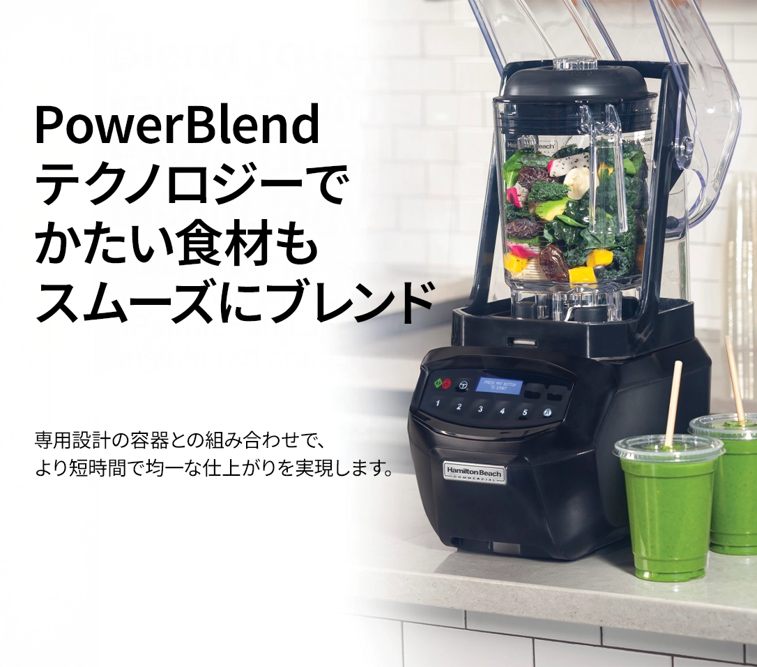 - スムージーやアサイーボウルなど粘度の高いドリンクも滑らかに仕上げる業務用ブレンダー